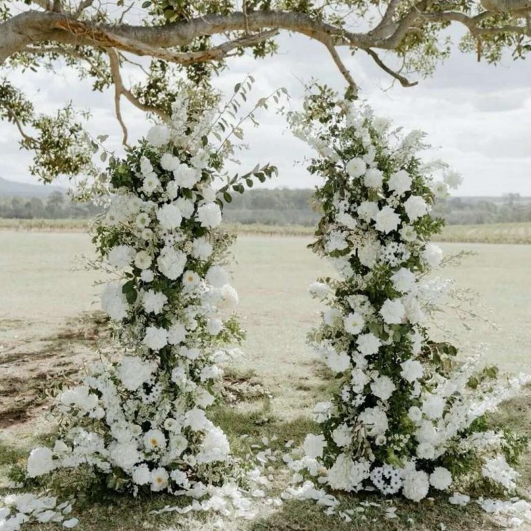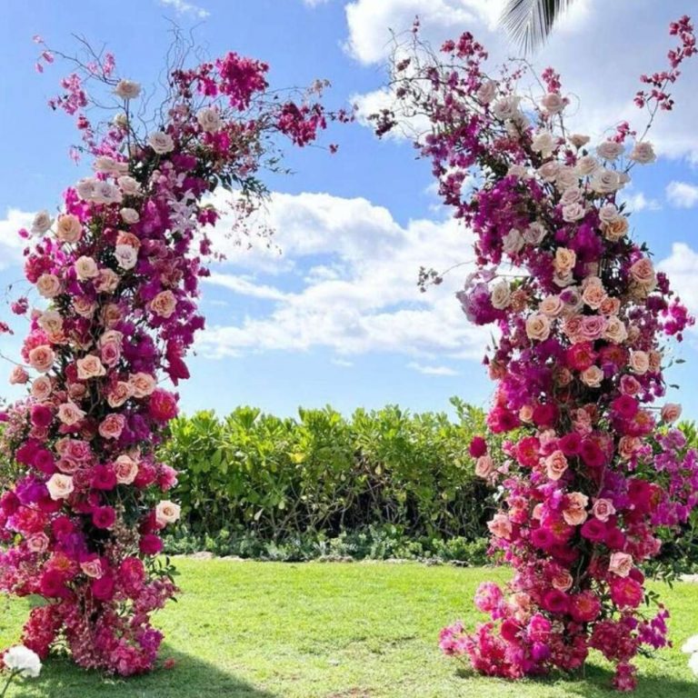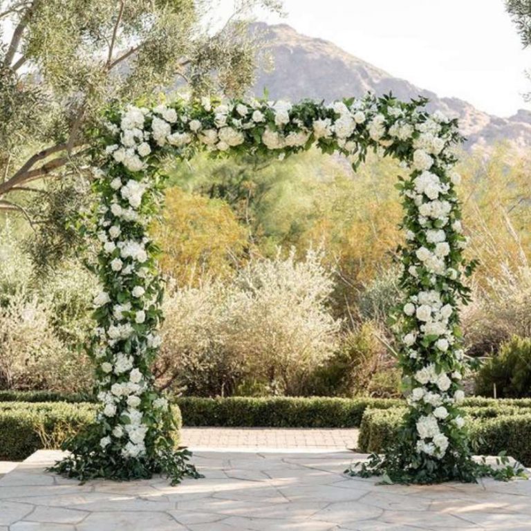This style provides a sleek, structured design for your wedding. Whether filled with delicate or vibrant blooms, this type of arch is ideal for framing your special moments adding a chic, modern vibe