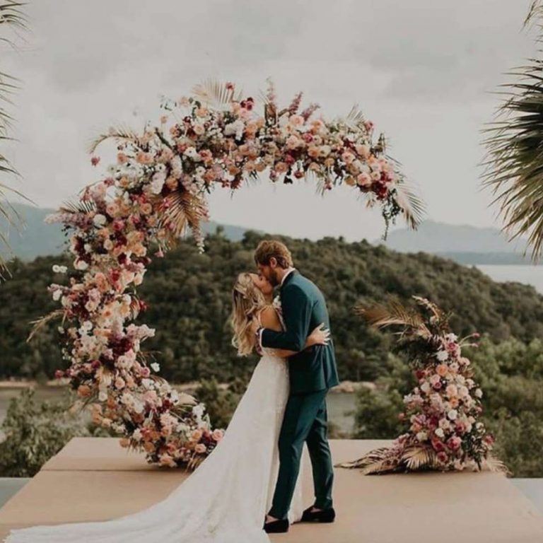 This arch has a completely round shape, symbolizing eternity and endless love. It is an ideal choice for modern or minimalist weddings