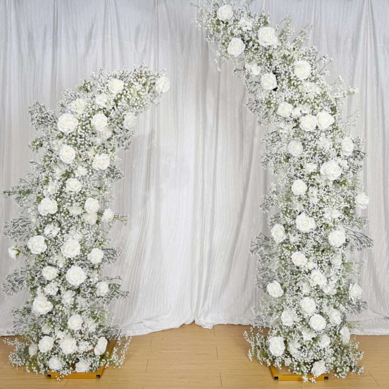 This arch has a crescent moon shape, offering a balanced and harmonious aesthetic. It is perfect for weddings seeking an elegant, classic design with a unique touch